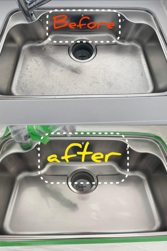 ステンレスはサビに強い素材ですが、水道水に含まれるミネラル分や洗剤カス、油汚れが蓄積すると、表面に白ボケやムラが発生します。これがいわゆる“水垢焼け”。一度定着すると、通常の清掃ではなかなか落ちません。