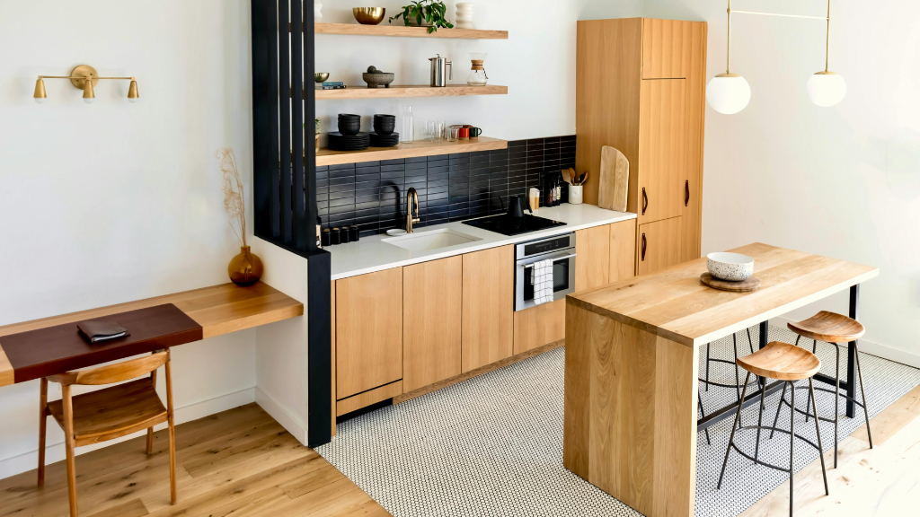 写真のように、木材の温かさをふんだんに取り入れた空間は、本当に魅力的ですよね。フローリング、ダイニングテーブル、キャビネット、そしておしゃれなワークスペースまで、木材は私たちの暮らしに安らぎと美しさをもたらしてくれます。
