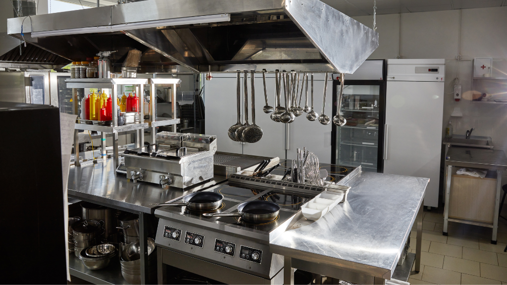 ・厨房のステンレスにこびりついた油汚れ
